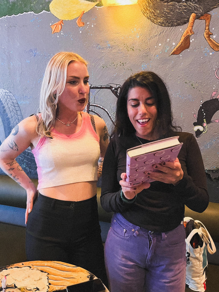 Swipe for appreciation av @nedaalaeisen sin fantastiske blurb på baksiden av boken, og fjeset mitt når @rutgranli sier «skriv noe schtøgt!»