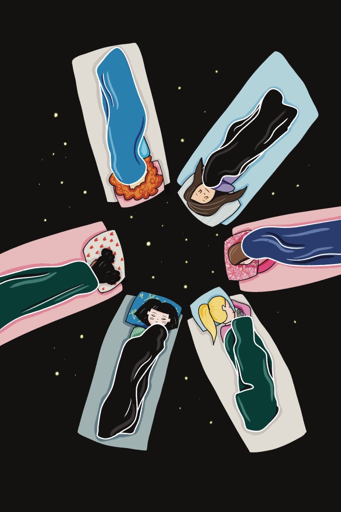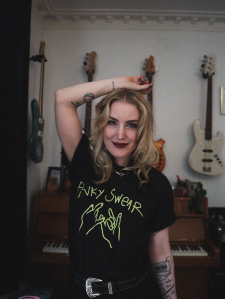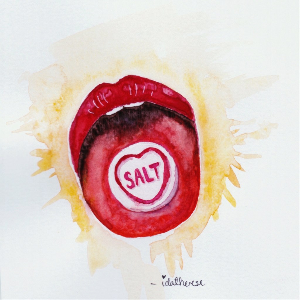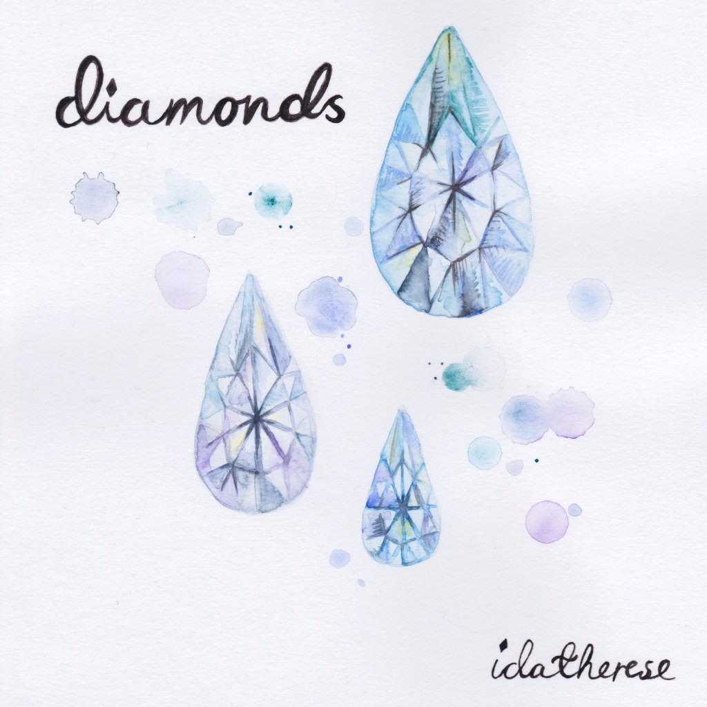 Mine første design var illustrasjoner. Jeg har alltid tegnet, og har malt akvarell siden jeg var barn (resultatet av en venninne på barneskolen med en aupair som startet akvarell-klubb med jentene i klassen – gøy, ja?). Da jeg i 2018 begynte å gi ut min egenproduserte musikk, syntes jeg det var passende at hele utgivelsen var DIY – og det resulterte i håndmalte singel- og EP-covre, skannet inn på min egen skrivepult og distribuert til strømmetjenestene. Når musikken og konsumeringen av den er digital, appellerte det analoge til meg.
