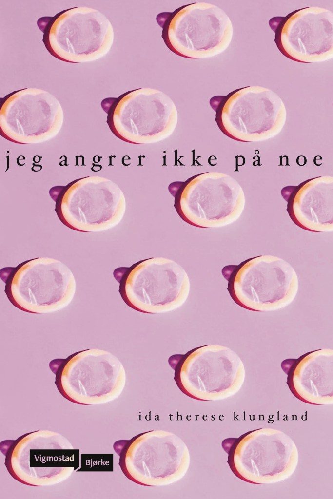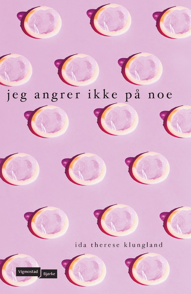 Også omslaget til jeg angrer ikke på noe skisset jeg i Procreate. Jeg prøvde meg med en rekke omslagskonsepter og titler, med bilder jeg hadde funnet på Pinterest! Da jeg gjorde et lilla kondomfoto rosa, fant jeg tittelen vi endte opp med til slutt. Redaktøren min fant fotoet jeg hadde brukt for salg til kommersielt bruk, og en designer mekket omslaget ut fra mitt design. Les mer om hele prosessen her!
