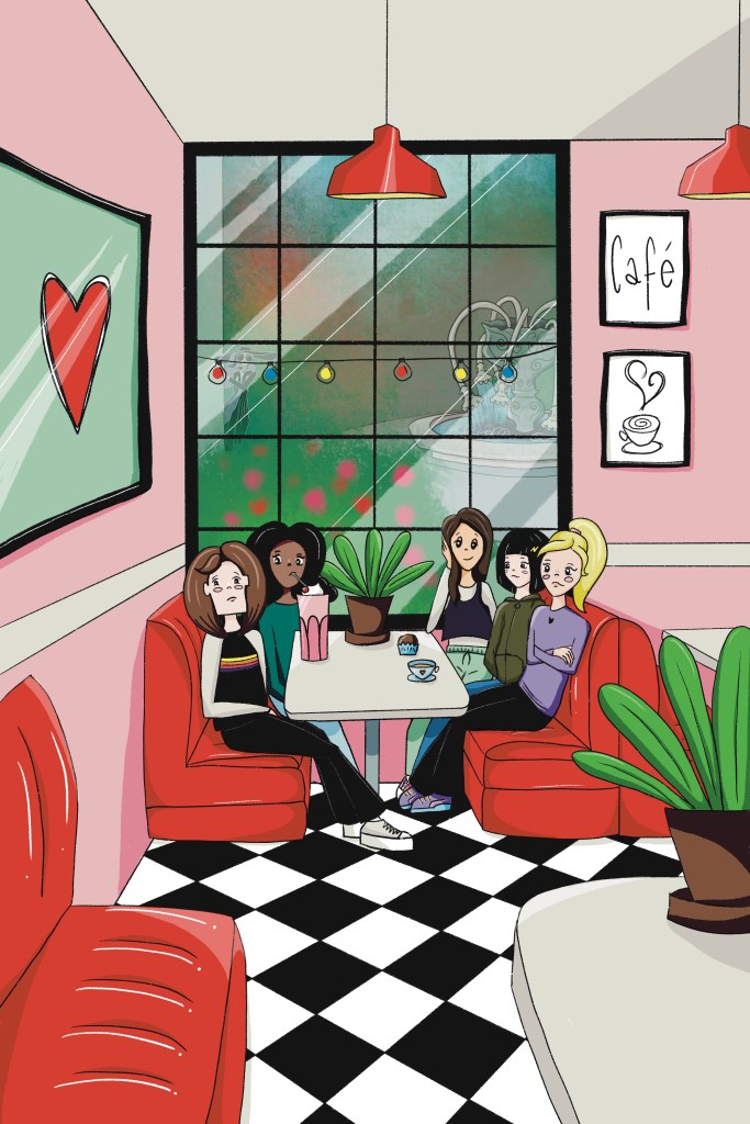 Siden jeg illustrerte mine egne bøker, var det naturlig at jeg også illustrerte omslagene. Jeg tegnet forside, bakside og rygg, men en annen designer klargjorde omslagene for trykk, siden jeg ennå ikke kunne InDesign, programmet omslagene må designes i før trykkeriet får filene.