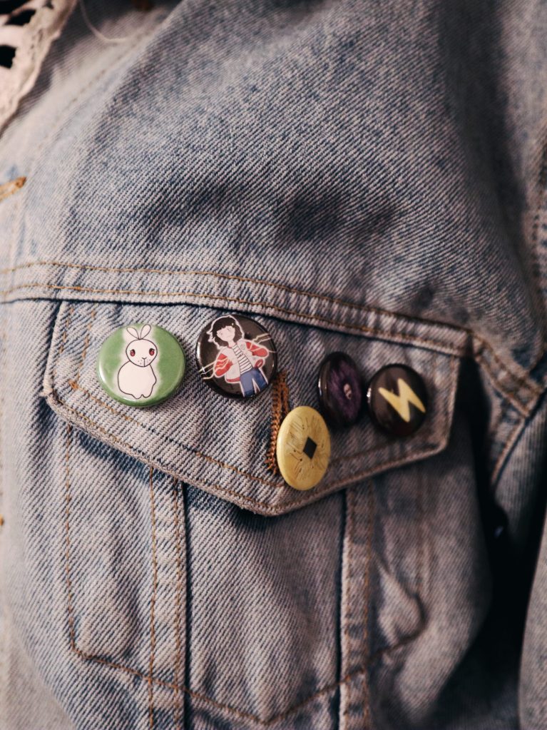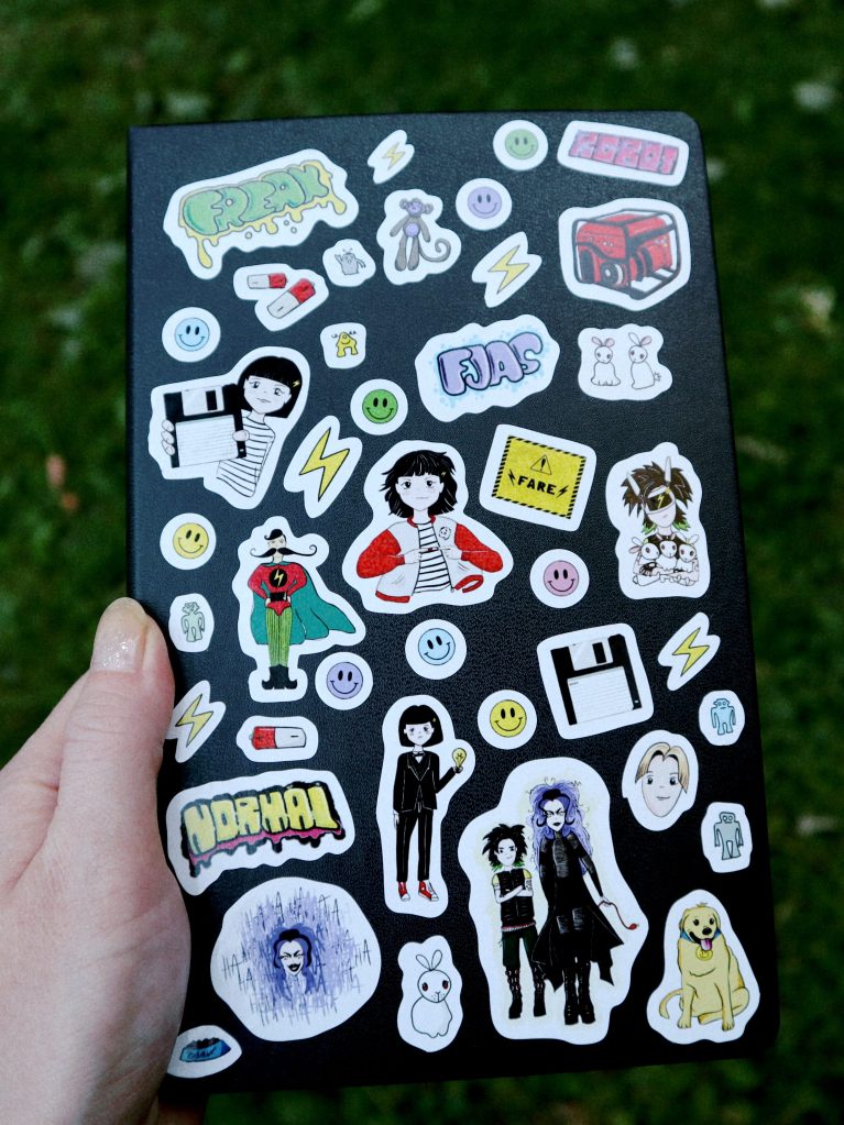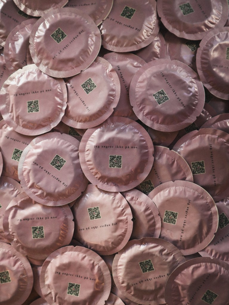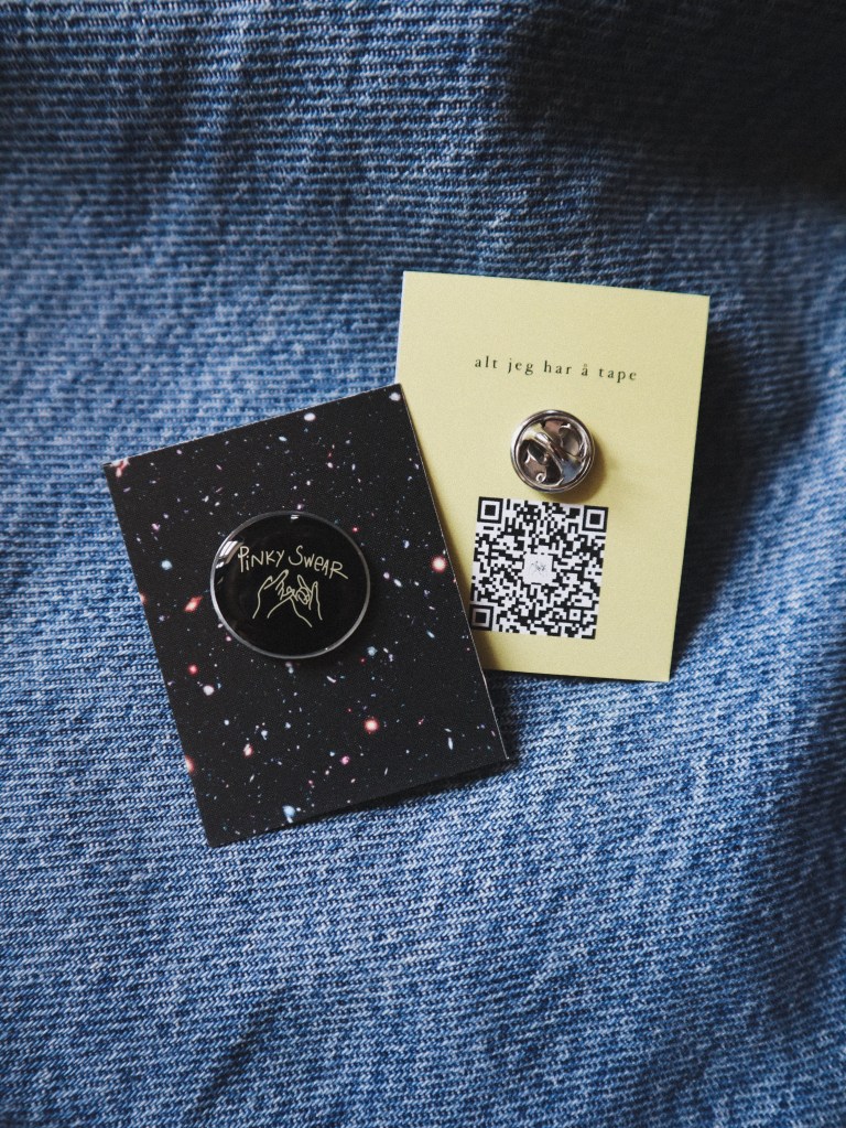 Jepp, jeg lager merch til bøkene mine. Pins, klistremerker, kondomer, you name it. Dette er fordi 1) jeg vil ha det selv, 2) gøy på lanseringsfest, 3) fin måte å gi noe tilbake til lesere på, 4) (spesifikt for kondomene) når du har en bok med kondomer på forsiden og drar rundt på skolebesøk, er det gøy om du legger igjen spesialdesignede kondomer på helsesykepleier-kontorene!