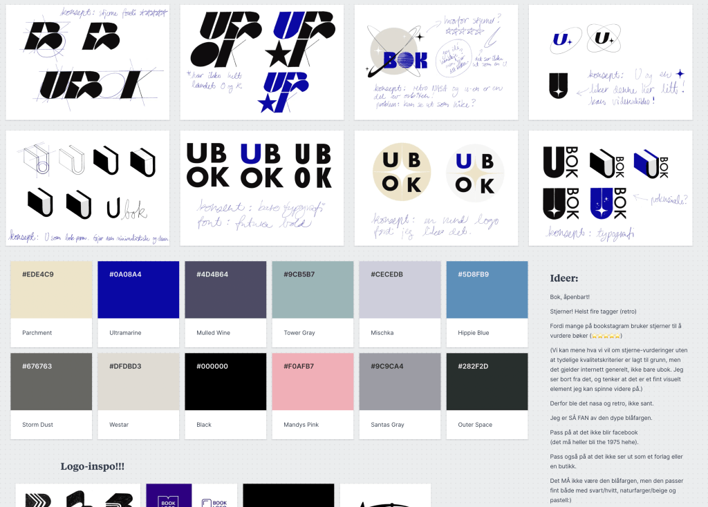 Mitt første logo-oppdrag (hvis vi ser bort fra min egen logo) var for Ubok! Ubok er en ungdomsredaksjon som anbefaler bøker til ungdom – alt bookish fra ungdom til ungdom, rett og slett! Startet i 2013, Ubok-redaksjonen er den eneste av sitt slag i Norge. Etter å ha kurset redaksjonen i litteraturformidling på sosiale medier, ble jeg hyret inn for å lage ny logo og hjelpe til med brand-utvikling.