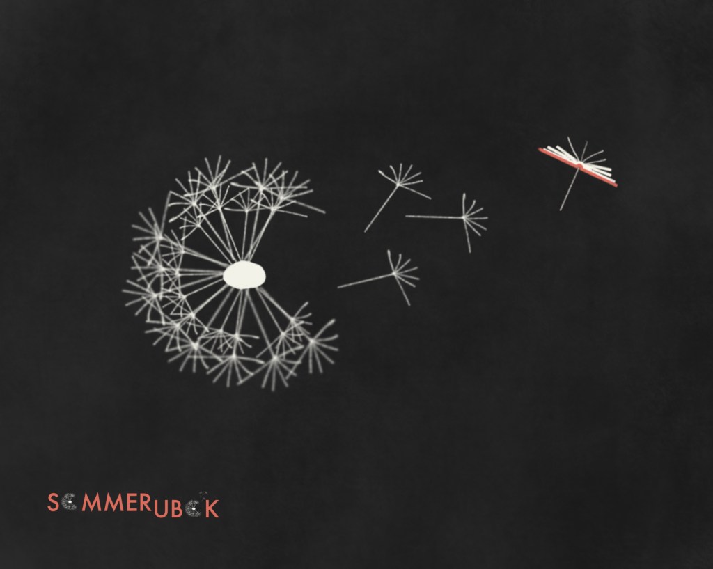 Konseptet med dette designet var å ta boken fra logoen til Ubok, og redesigne den til et løvetann-frø. Løvetannen blir O-ene i navnet, og de flyvende bok-frøene representerer boktipsene og lesegleden som sprer seg! Ganske kos.